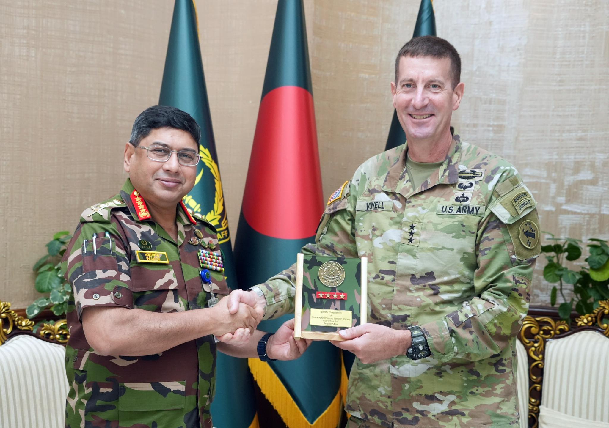 Lieutenant General Joel B. Vowell, Deputy Commander of US Army Pacific Command, meets with General Waker-Uz-Zaman, Chief of Army Staff, Bangladesh Army, at Dhaka Cantonment. 📷 Bangladesh Army/March 25, 2025