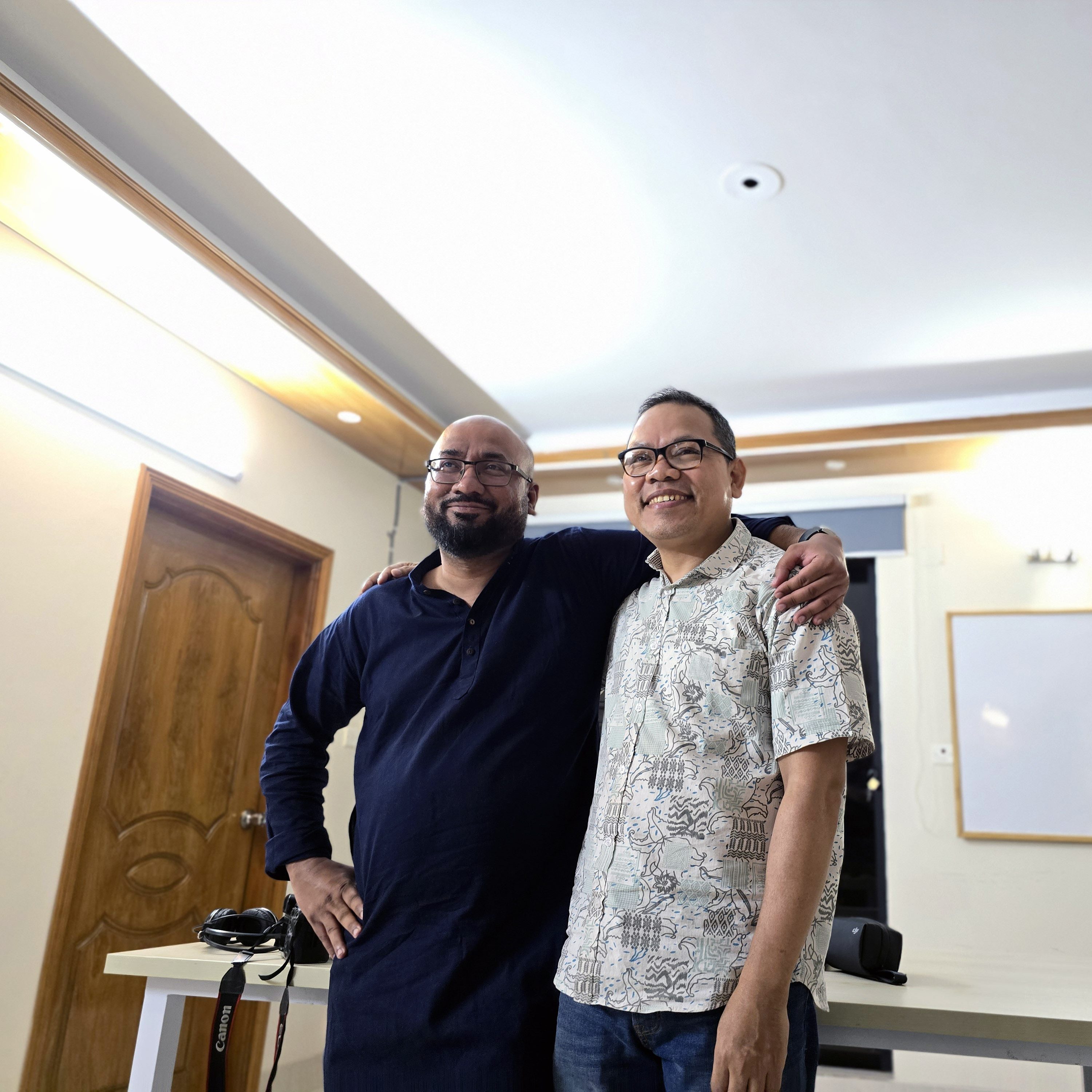 At Netra News’s Dhaka office, Tasneem Khalil meets survivor Michael Chakma to document his experience of enforced disappearance and secret detention at Aynaghar. March 2, 2025.