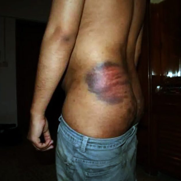 Human Rights Watch (HRW) published this photograph of Tasneem Khalil, showing bruises from torture endured during his 2007 detention by the DGFI, taken 48 hours after his release.